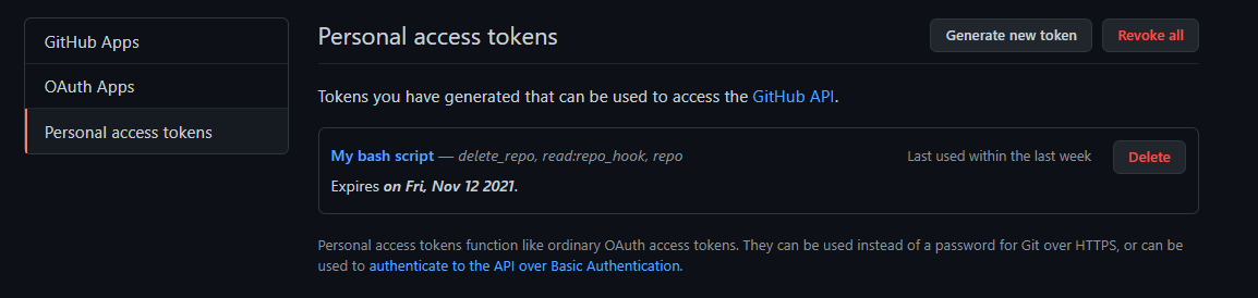 그러면, 토큰 암호 값이 생성이 된다. 그것을 잘 저장시켜 둡니다!