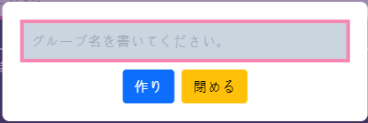 <input class="border-4 border-pink-400 bg-gray-400 w-full p-2 mb-2" type="text" v-model="groupName" placeholder="グループ名を書いてください。">