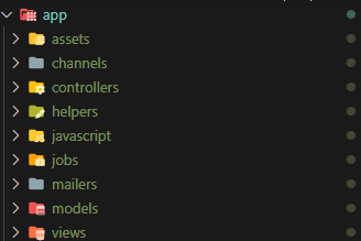 Ruby on Rails는 MVC디자인을 사용하는데, App폴더안에 Model, View, Controller 폴더가 들어있는 것을 확인할 수 있습니다.