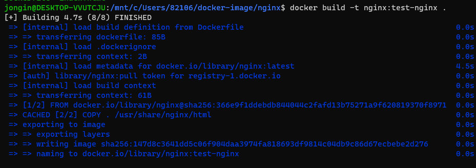 COPY . /usr/share/nginx/html : 현재 디렉토리 위치에 있는 파일을 /usr/share/nginx/html 폴더에 복사