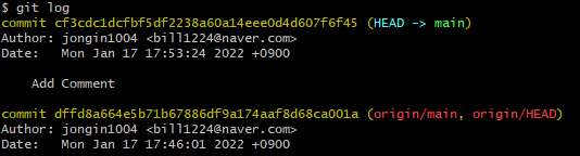그리고, git log를 통해서 commit 기록을 확인해보면,