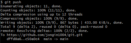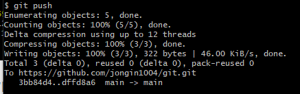 하지만, 아직은 remote repo도 적용된 것은 아니니 git push를 통해서 remote에도 동기화를 합니다.