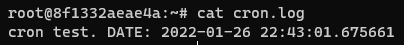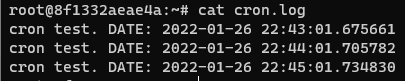 디렉토리 목록을 확인해보면, cron.log라는 새로운 파일이 생성된 것을 볼 수 있습니다.