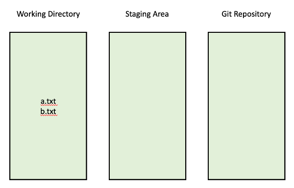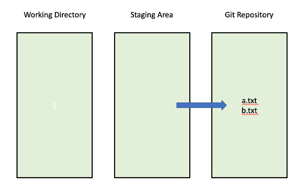 따라서, 파일을 a.txt와 b.txt 두 개를 추가했지만 파일을 각각 나누어 커밋하고 싶은 경우에는 우선 git add a.txt로 working directory에 있는 파일을 staging area에 이동시키고, git commit 명령을 통해서 커밋을 하면 됩니다.