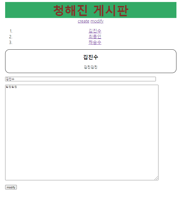 게시판 홈페이지를 하나 만들고 , 게시판 글을 생성/ 수정 / 삭제를 할 수 있도록 만드는 실습을 해봤다.